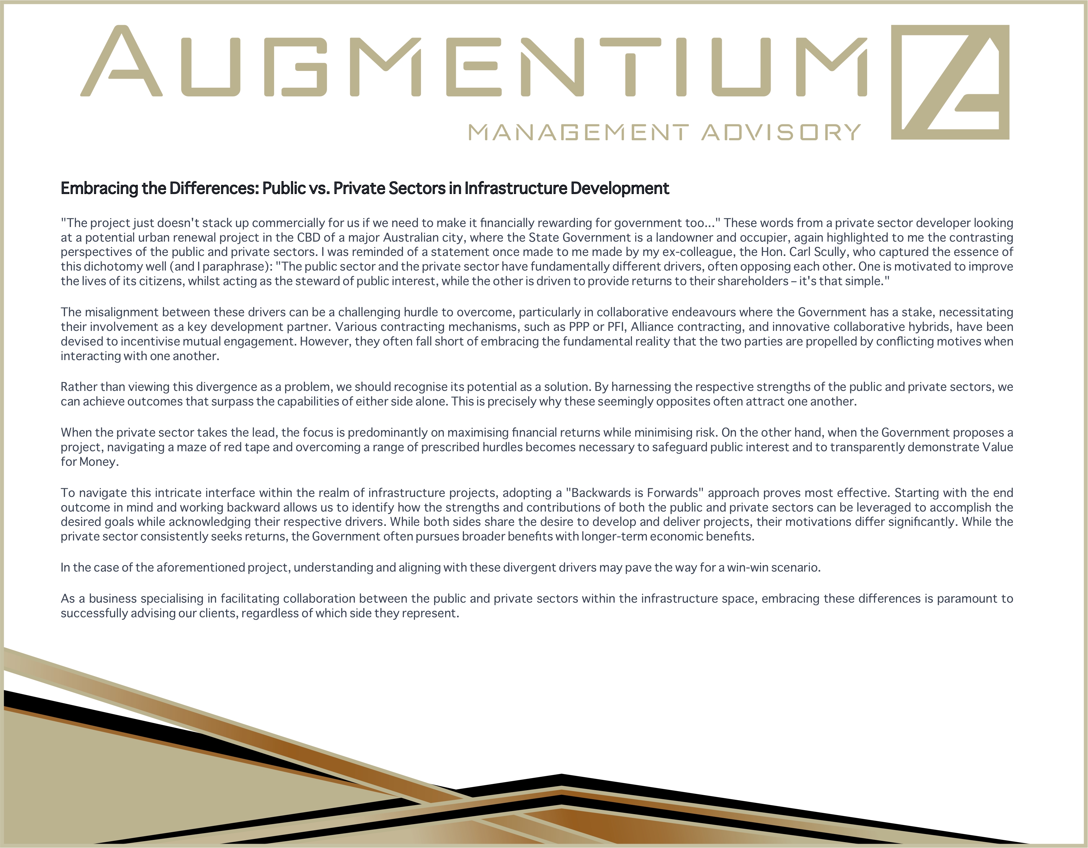 Public vs Private sectors in Infrastructure Development